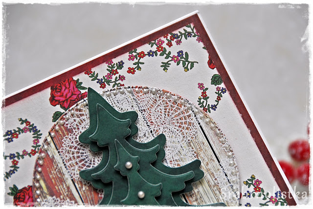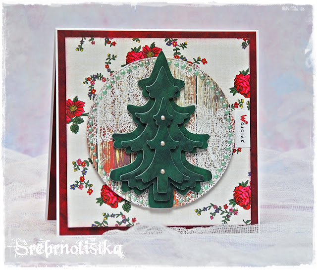 Czyli na pracę z dużą ilością warstw. Ja jeszcze pozostaję w klimatach świątecznych. Ta kartka powstała jako projekt prosty - i jak widać 6 warstw u mnie to kartka prosta ;)
